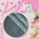 Part of a coordinating design set for Christmas, this paper plate features diagonal stripes in shades of watchet blue, dark teal and white. Optional 'Happy Holidays' text and a template have been provided to add your name and/or other text. Search ID861 thru ID864 to see additional color options and other products in this modern, Christmas design set.