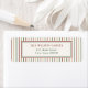 Minimalist personalized return address labels for holiday cards featuring Christmas colour stripes background.