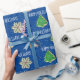 Happy Holidays sugar cookie collection on white snowflakes and blue background.