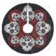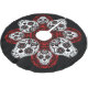 Christmas tree skirt for a Day of the Dead theme. A red and black background with sugar skulls all around this cute theme tree skirt.