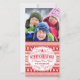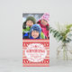 Festive Ugly Sweater Christmas Holiday photocard with folk-art knit Nordic stitch pattern background in red and white. Vintage typography layout with fancy swirls, snowflakes, tree, deer, and antlers. Perfect for sending fun, light-hearted holiday greetings and warm wishes. Matching mailing accessories for cards, invitations, packages and gifts available. Personalize it with your name or custom greeting. Bright and cheerful, classic modern and cute whimsical way to set the spirit of the season for all your friends and family with trendy but traditional rustic charm.