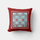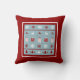 Cute Holiday Throw Pillow; Christmas Sweater pattern on a pale ice blue tile, on a crimson red pillow. Pattern contains white and red snowflakes, reindeer, wrapped presents, christmas trees, hugs and kisses (xoxo), and thin red doodle arrows. #Americana #FolkArt #RedWhiteandBlue