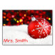 Christmas table card with red and white decorations and customizable text.