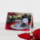 A delicate teacup on your Christmas table with the holiday decor of evergreen and roses. This is a beautiful picture of “classic” style Christmas. It is both personal and warm. Add your photo and greeting on the inside for an elegant and traditional correspondence. Have a wonderful holiday season. Blessings!