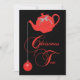 A simply elegant Christmas tea invitation featuring red lace covered teapot, lettering and christmas ornaments with silver trim on a black background. The pretty red lace motif of interlacing stars and flowers is reminiscent of the ancient craft of lace-making. All party information on the back of the invitation my be customized to fit your needs.