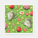 Christmas holiday tea party napkins featuring silver Santa teapot illustration.