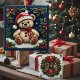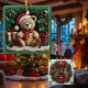 Christmas Teddy Bear Faux Stained Glass Glass Ornament