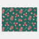 Hand-Painted christmas design with teddy bears, baubles, candy canes, striped bows, and small stars in traditional festive colours. Three sheets, blue, green, white.