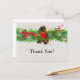 This elegant design features a pine branch with pinecones, red berries, snowflakes and a red ribbon. Text can be customized.