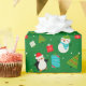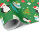 Make holiday gifting extra special with this adorable green gift wrap featuring a playful Christmas-themed pattern kids will love! Decorated with cheerful icons like Snowman, Christmas Tree, Penguin and Santa hats, it adds a festive touch to every present. Perfect for wrapping children's gifts with joy and holiday spirit.