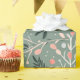 This Christmas theme wrapping paper design features white, green, and pink holiday symbols in a seamless pattern, perfect for wrapping gifts this holiday season.