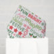 The design features colourful happy holidays typography in a seamless pattern with a custom white background.