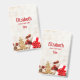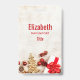 Personalized name badge with a rustic photograph. A light brown wooden board with various Christmas elements along the bottom.