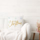 Christmas themed cushion. Merry Christmas in Gold with colorful/colorful snowflake background. Great for the home and office.