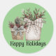 Christmas themed sticker of festive pots and plants with chequered bows.