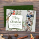 Merry Christmas three photo holiday card features a beautiful watercolor winter foliage illustration with script and serif fonts. This minimal, simple and elegant design is ready for you to customize with your own family photos and message. Change the text or background colour or keep as shown here. Please browse the Merry Christmas Family Photo Card Collection for more designs.