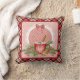 Decorate for the holiday season with this whimsical pillow depicting a cup of hot cocoa with marshmallows on a pink and brown background.
