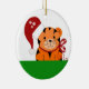 A cute cartoon tiger decked out in a red santa hat with little white snowflake designs. A red holiday bow around his neck. Add a message or saying if so desired.