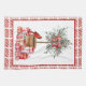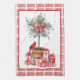 Festive kitchen towel that features a colourful Christmas topiary with a cardinal and Christmas presents at its base.