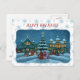 a romantic christmas happy holiday postcard featuring an old town squaire on a winter night. santa clause, a christmas tree & a lot of snow. exclussive by frank glerum art.
