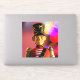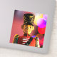 Christmas toy soldier figurine SlipperyJoe gay pride gifts LGBTQIA colourful bokeh lights background vibrant coloured red jacket uniform gold buttons shoulder epaulets cartoonish face artistic black hat gold eagle emblem pink purple yellow red festive atmosphere