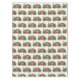 Patterned tablecloth with a cute and whimsical Christmas theme. A cozy trailer decorated for Christmas set among some pine trees.