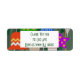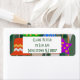 These return address labels have a design that looks like ornaments in red, green, blue, pink, gold, silver, and white on a Christmas tree.