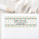 Address labels with a cute christmas pattern with a cream coloured background with illustrations of a pastel greenish blue coloured christmas tree and a pastel pink bauble with a ribbon in a repeating pattern.