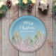 Christmas Tree Artistic Pink Green Watercolor Paper Plates. Festive watercolor pink and green Christmas trees with snow and a Merry Christmas wish. Add your text.