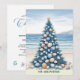 A sweet exotic Christmas design with a Christmas tree made of shells, with the ocean and mountains in the background. You can personalize this invitation with your own details.