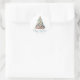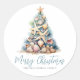 Christmas Tree Beach Classic Round Sticker. Spread some beachy holiday cheer with this unique round sticker featuring a Christmas tree made of shells and starfish. The tree, topped with a starfish, is designed in calming blue and green hues, reminiscent of underwater coral, and is set against a sandy base. This rustic watercolor style sticker is perfect for anyone in tropical places like Florida, Hawaii, or the Bahamas, or anyone who loves the beachy vibe. The mix of simple fonts and script typography adds a touch of elegance, while keeping things casual. Ideal for adding a coastal, festive touch to your holiday card envelopes, party favours, or any other seasonal items.