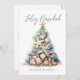 Christmas Tree Beach Feliz Navidad Holiday Card. Feliz Navidad! Share warm and beachy wishes this season with a unique holiday card featuring a charming Christmas tree crafted from seashells and starfish. The tree takes centre stage, topped with a starfish and blending soothing blue and green hues that evoke the beauty of the ocean. Resting on a sandy base, the design has a rustic watercolor style that adds a casual elegance. Your family name is beautifully displayed at the bottom, creating a personalized touch. Perfect for anyone living in tropical locales like Florida, Hawaii, or the Bahamas—or for those who simply love coastal vibes. Available as a printed card or a digital download for emailing or local printing, it’s a fun way to bring a splash of surf and sand to your holiday greetings!