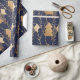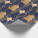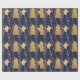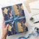 Christmas Tree Blue Navy Gold Fancy Glitter Wood Wrapping Paper