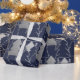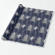 Christmas Tree Blue Navy Silver Grey Glitter Wood Wrapping Paper