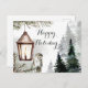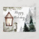 New Year's card happy holidays card in pastel colours it depicts: an owl, a Christmas tree branch, a lantern with a candle, a forest. watercolor technique