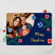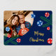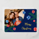 Elegant custom Christmas card with golden or silver foil letters features minimalistic Christmas tree pine branch with red and blue decoration with snowflake pattern for festive holiday season. These ornaments add a playful and festive flair to the overall design. The illustration radiates a joyful and carefree holiday spirit, capturing the magic of decorating a Christmas tree. This cute Christmas tree branch with baubles pillow is perfect for spreading holiday cheer and warm holiday vibes, adding a touch of festive whimsy to your Christmas home decor. Personalize this Christmas card with your photo, your greeting and family signature.