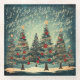 Christmas Tree Forest Celebration. Decorated Christmas trees with musical notes and gold stars. Festive holiday design.