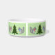 This awesome Christmas patterned pet bowl features a digital art image of a pair of cute squirrels decorating a Christmas tree with brightly coloured hazelnuts. The tree is green with a yellow star on top and each squirrel is holding a Hazelnut to eat and wearing a scarf to keep warm in the cold winter.