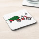 Christmas tree delivery in a little red wagon, tricycle style. Very cute retro gift.