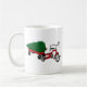 Christmas tree delivery in a little red wagon, tricycle style. Very cute retro gift.