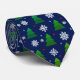 Christmas tree forest, snowflakes and red blue dot tie