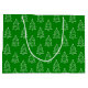 A large gift bag built with a white Christmas tree pattern on a green background. Customize the green background color, pattern size among other options.