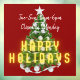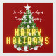 Festive window cling sign for retail, restaurant or other business, featuring a decorated Christmas tree with "Happy Holidays " neon text. Additional text in white is customizable and can include business hours or other related information.