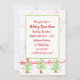 A festive holiday open house invitation decorated with little Christmas trees adorned with red ribbons and ornaments with red ribbon banners and a watercolor spatter border. Nice for gathering friends and family at Christmastime!