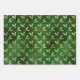 Christmas Tree Holly Patterns Green Gold Wrapping Paper Sheet