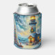 Christmas Tree Lighthouse Nautical Coastal Blue Can Cooler
