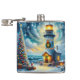 Christmas Tree Lighthouse Nautical Coastal Blue Hip Flask