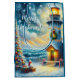 Christmas Tree Lighthouse Nautical Coastal Blue Medium Gift Bag