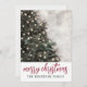 Christmas tree merry Christmas with glowing lights and a vibrant modern script typography Christmas holiday card. Add your family name.