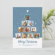 Christmas Tree Modern Family Photo Collage Blue Holiday Card